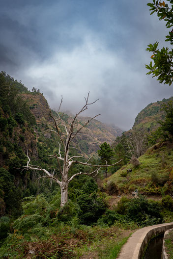Die Levada Moinho ist augenscheinlich älter, weniger ausgesetzt und die Flora am Wegesrand ist hier urwaldartig. Wandern ist hier auch ohne Schwindelfreiheit möglich.