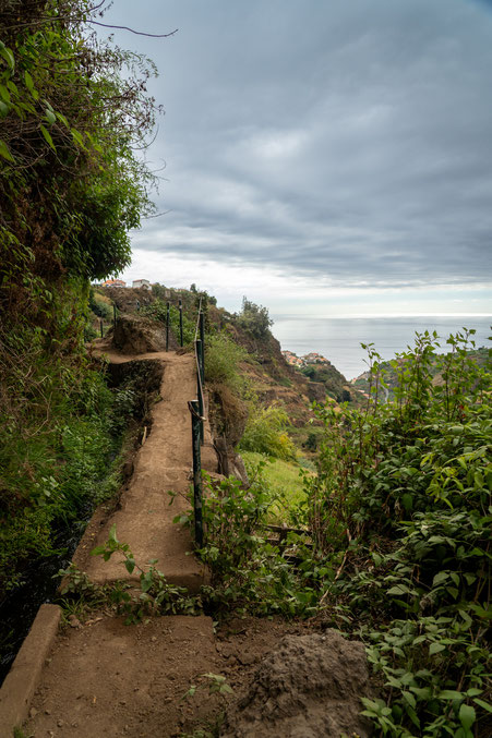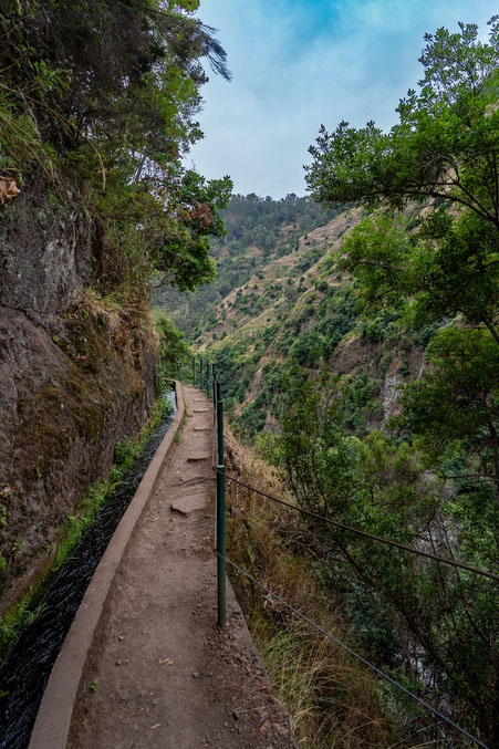 Levada-Wege sind schmal und dieser hier ist zusätzlich ausgesetzt (wenig Sicherung und auf einer Seite geht es gerne mal 50m senkrecht nach unten). Schwindelfreiheit und Trittsicherheit sind von Vorteil.