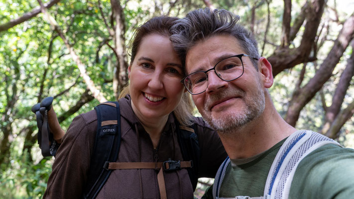 Wir sind heute sehr früh los, da die Wanderung sehr bekannt ist und als wir neulich mit anderem Ziel dort vorbei fuhren, war es enorm voll. Um 9:00 Uhr, für Wanderungen auf Madeira ist das früh ;-), sind wir am Parkplatz noch fast allein. Tolles Wetter auf 1100 m Höhe, aber noch sehr frisch und sehr windig.