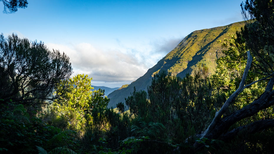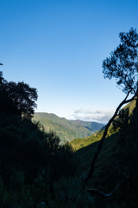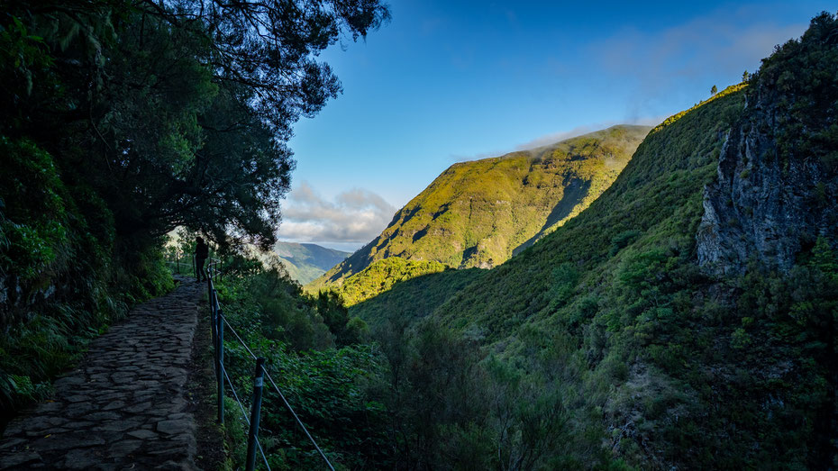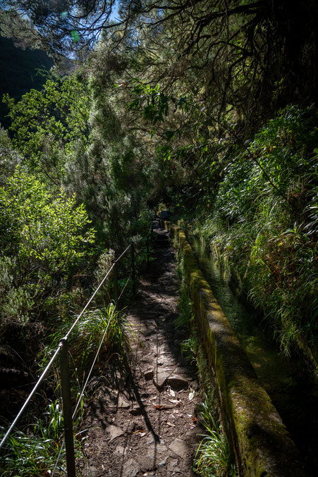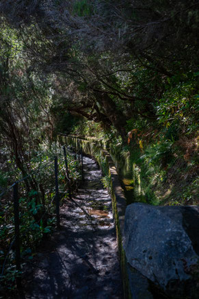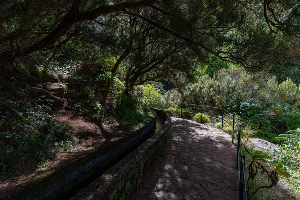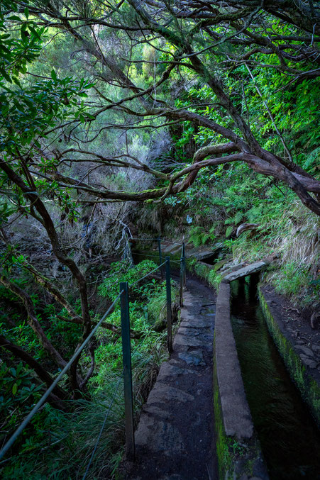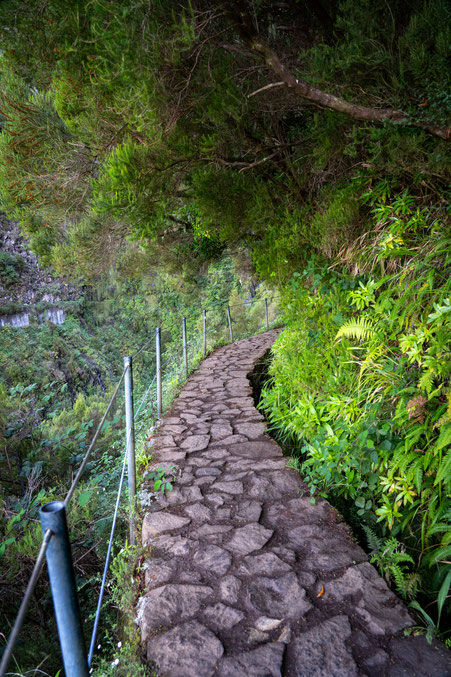 Über eine asphaltierte Straße (für müde Touristen verkehrt hier ein Minibus) gelangt man zum 350m tiefer gelegenen Forsthaus Rabacal. Hier beginnt der Wanderweg entlang der Levada do Risco zum gleichnamigen Wasserfall.